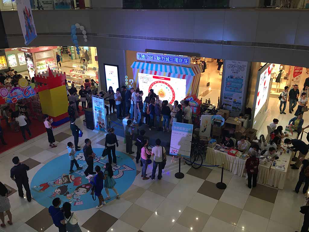 5月28日,凯德广场魅力城店迎来了盛大的开业3周年庆典。此次活动,快乐大屏幕作为现场互动唯一的支持者,完美的为内场福利派发和外场欢乐互动提供了解决方案。外场活动大约在晚上7点正式开始,来宾使用手机关注凯德官方微信号,即可实现头像和昵称的“上墙”,这些头像组成了本次活动的主题“我们在一起3”,围观群众在欣赏台上热闹的表演的同时,还可与台上大屏幕实现无缝交流,真的是好看又好玩~在看看内场的盛况,活动规定满200即可参与快乐大屏幕抽奖,大奖包含iphone6S,iwatch,ipad mini等接近4000个礼品全部送送送!所以快乐大屏幕前必须是排上了长长的队伍,直到晚上11点30大转盘才为热情的消费者抽取完全部的福利。人流量极大的商场互动,快乐大屏幕也能轻松把控哦~