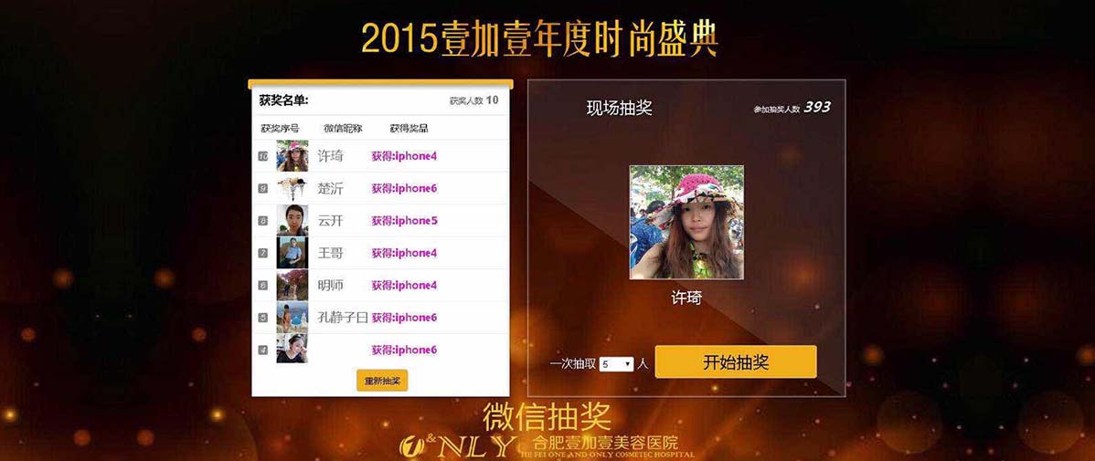 利用签到的图像与昵称信息抽奖,炫酷视觉盛宴现场大屏滚动播放,随时可见您的身影大奖随心所定,带给您全新震撼的体验!