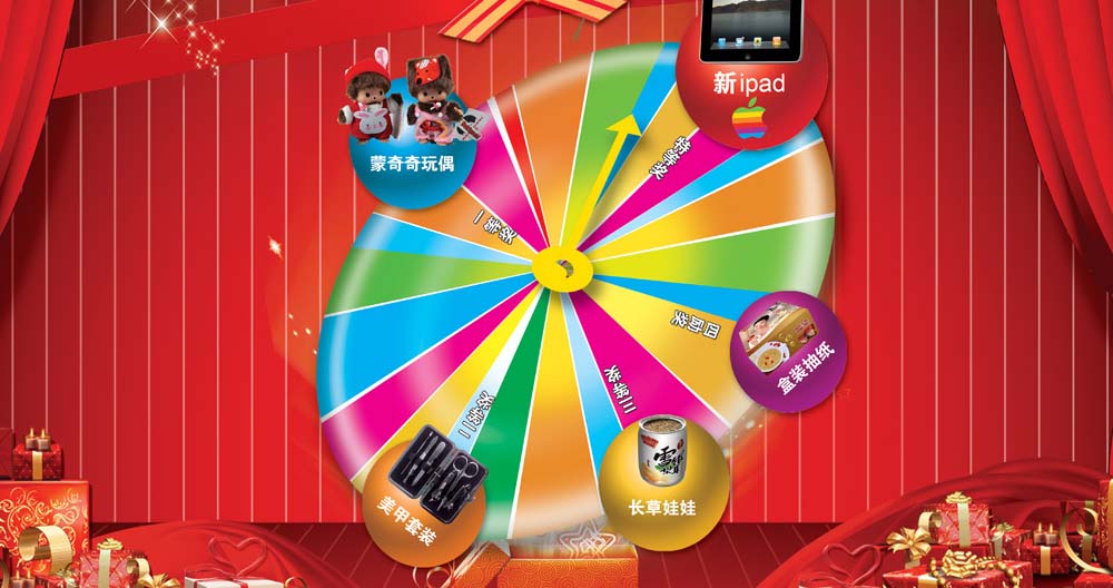 在摇出来的页面上,点击转动圆盘。箭头指向的大奖,就是你的啦!