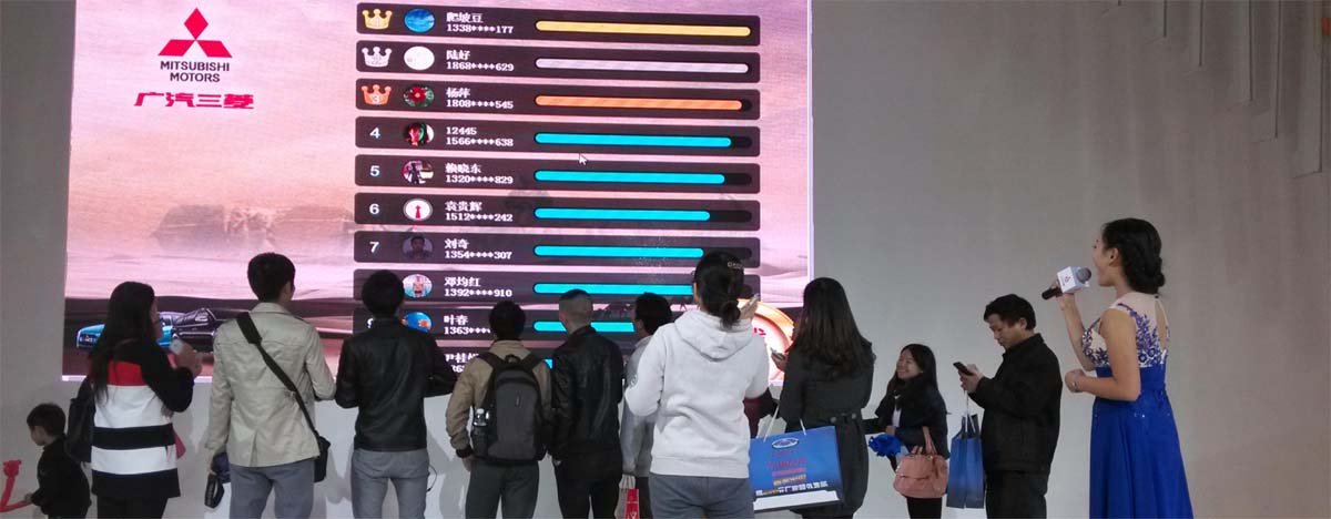 来宾点击手机摇一摇参与链接,待大屏幕倒计时结束后猛摇手机,大屏幕将前八名手速快者进行实时展示!